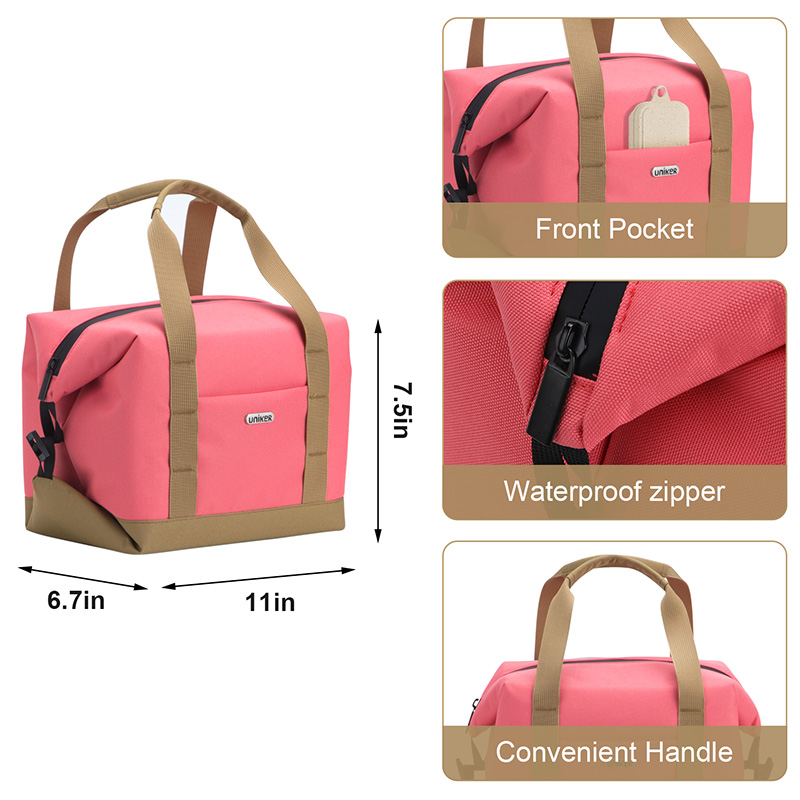 The insulated lunch bag has water-resistant exterior & interior material. Very strong waterproof function, not easy to leak.