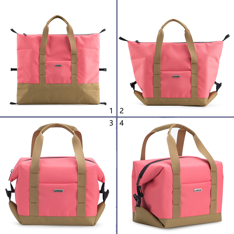 You can use it to pack snacks and keep items dry, cold or hot. You can open the buttons on both sides when you don’t use it. Press it into flat to save space. An external side pocket is good for forks and napkins, or lunch note.