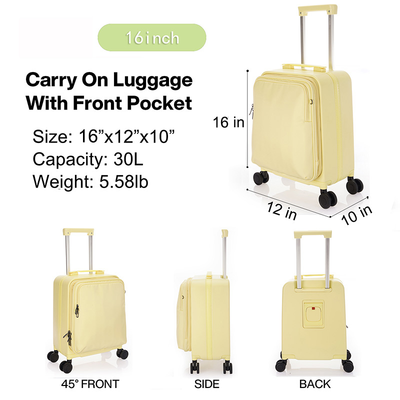 【THREE SPACES IN ONE SIZE】The 16 inch suitcase is in soft and hard side conjoint design. With 4 universal wheels, carring your stuffs easily. The large main compartment collects your books, clothes and other stuff. The TPU pouch and laptop sleeve can hold the electronics or 14 inch laptop well, protect your laptop from the bumps and the scratches. The front compartment offers various pockets for quick access to notebooks, pens, earphones, and other small items. The carry on luggage 17x12x10 is a good choice for 1-2 days travelling.