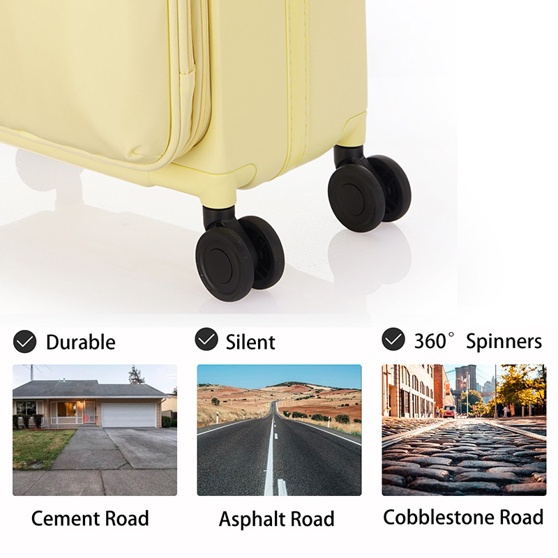 【ROLLING SUITCASE WITH 4 SPINNERS】With noiseless wheels which you can pull it smoothly when you are on the trip.